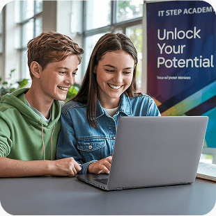 Навчання в IT STEP Academy побудоване так, щоб ви максимально швидко та ефективно засвоїли необхідні знання та були готові до роботи в IT. Ми поєднуємо теорію, практику, індивідуальну підтримку та роботу в команді, щоб зробити навчальний процес максимально продуктивним.